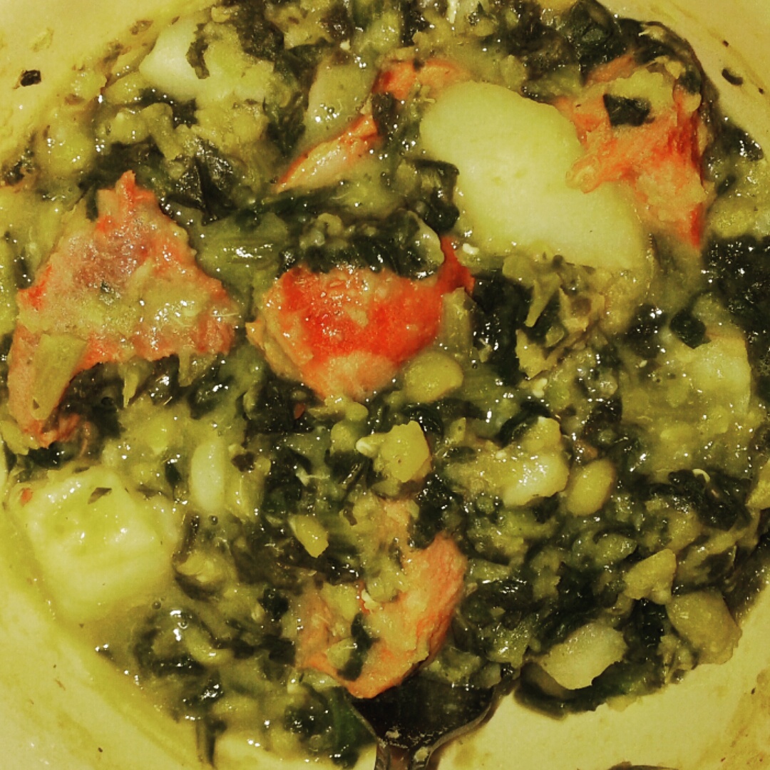 I don’t really know the family recipe but I’m sure I can get my grandmother to give it to me. It’s basically a couple packages of frozen kale, split peas soaked overnight, white potatoes peeled, chirico (my gram uses linguicia instead) and a piece of meat with a bone in the middle of it.