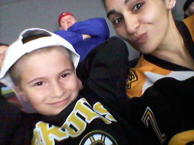 On November 1st, as an early birthday present, we took LJ (as well as Ari and Hayden) to a Providence Bruins game at the Dunkin Donuts Center. At the game, they received Providence Bruins Hats.