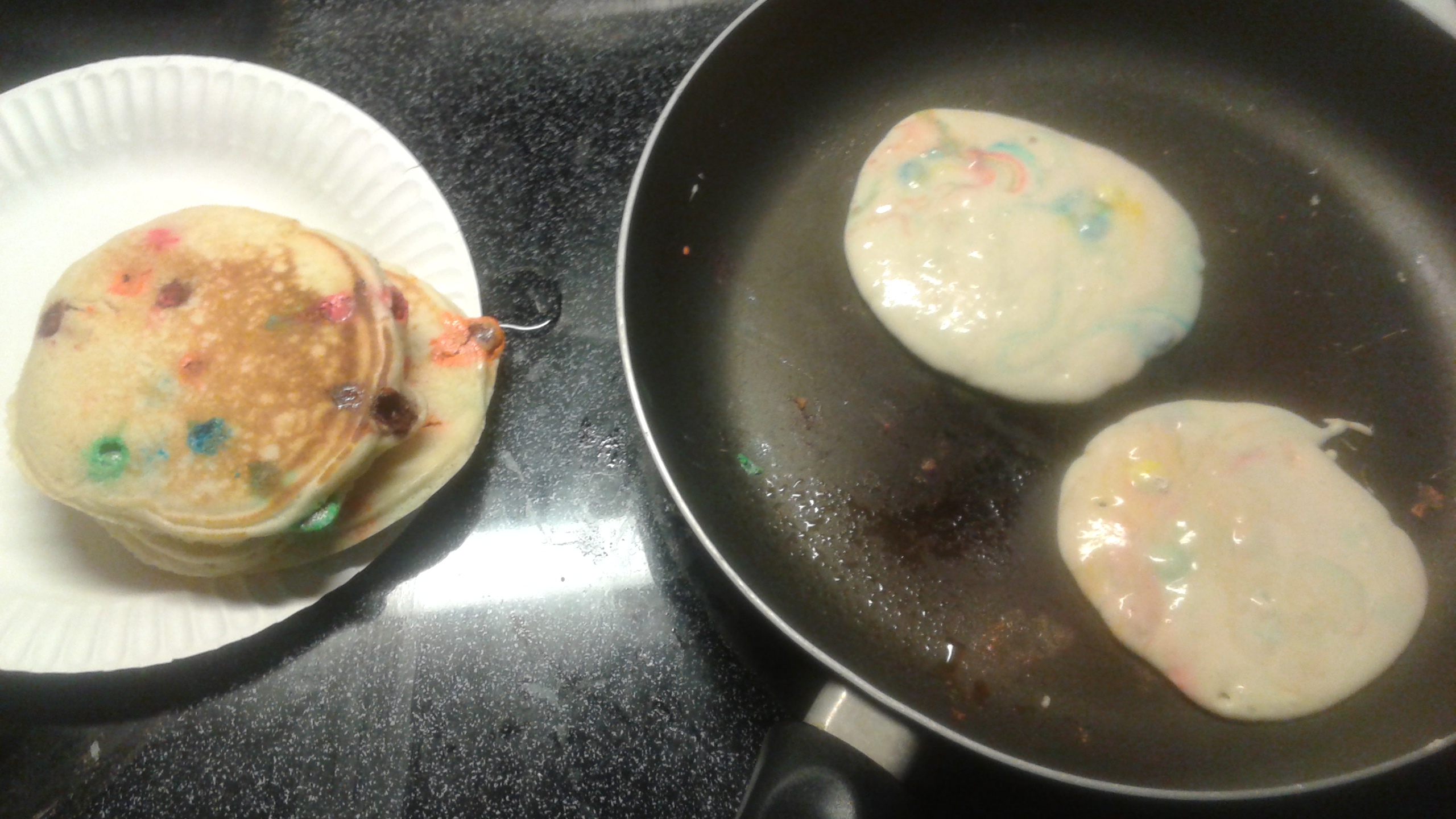 Then Today, His actual birthday, I made him M&M pancakes. yummmm.