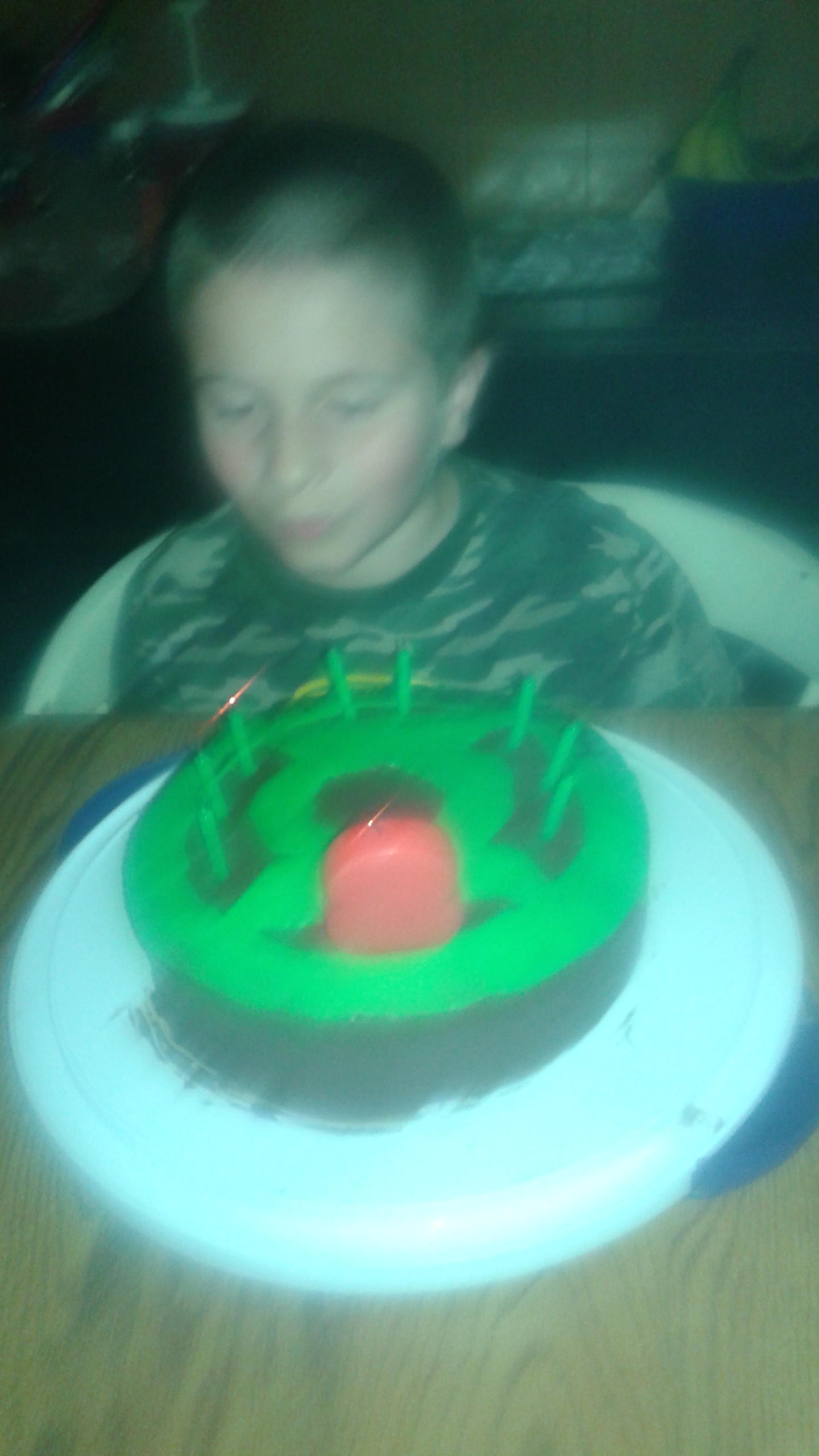 After Dinner, which was homemade pizza, we celebrated with the cake I made him. Green Lantern.
